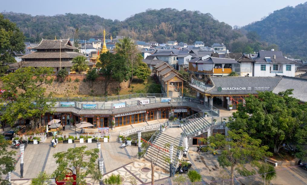 这是2024年3月19日拍摄的云南省孟连县精品咖啡主题街(无人机照片)。