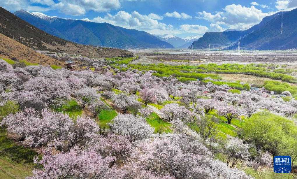 这是在西藏林芝市巴宜区拍摄的桃花(2024年4月1日摄,无人机照片)。