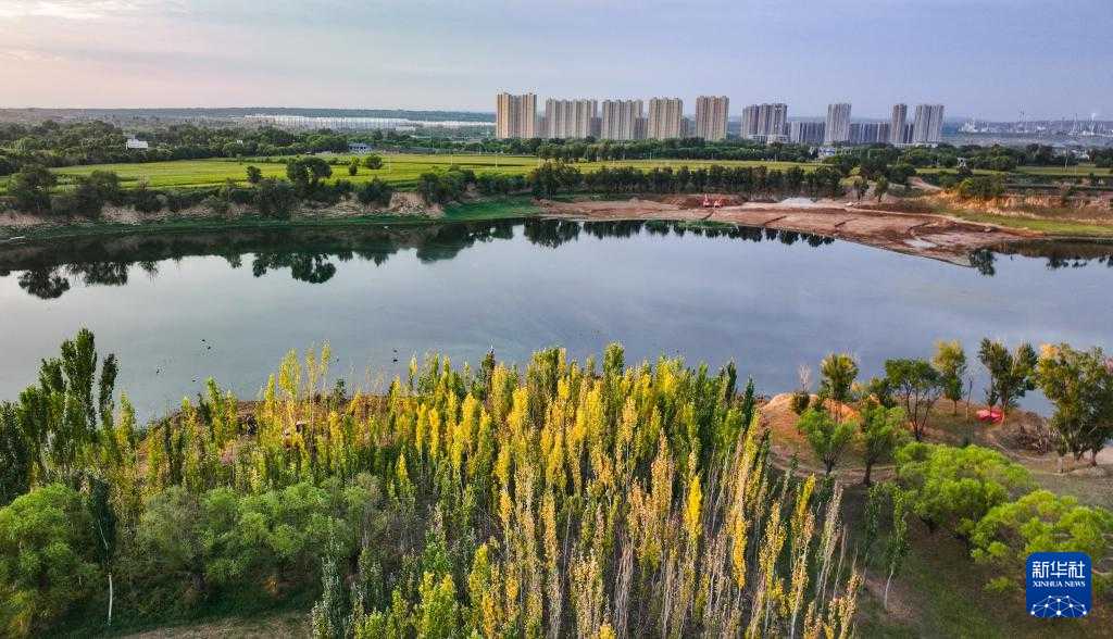 陕西省榆林市靖边县城内芦河一角(2023年8月20日摄,无人机照片)。